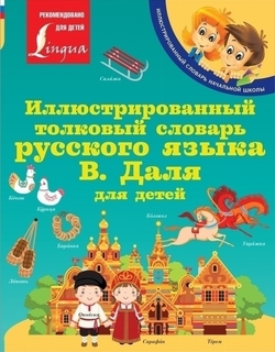 Даль, В. И. Иллюстрированный толковый словарь русского языка В. Даля для детей : [для младшего школьного возраста] / иллюстрации Т.А. Ляхович. – Москва : Lingua : АСТ, 2022. – 189, [1] с. : цв. ил. ; 21 см. – (Иллюстрированный словарь начальной школы) (Учимся легко в школе и дома)Иллюстрированный словарь поможет приобщиться к бесценному сокровищу В.И. Даля – «Толковому словарю живого великорусского языка». Он содержит более 600 слов, характеризующих эпоху прошедших столетий и часто встречающихся в произведениях литературы, пословицах, поговорках и загадках. Яркие красочные иллюстрации, в том числе уже знакомые детям из сказок, способствуют лёгкому и надёжному запоминанию значений изучаемых слов