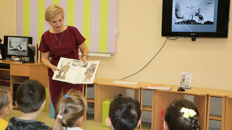 Олений десантДошкольникам рассказали о подвиге северных оленей в годы Великой Отечественной войны23 октября 2025В Центре чтения «Читай и познавай» прошли патриотические часы, посвященные 81-й годовщине разгрома немецко-фашистских войск в Заполярье. Юных жителей Мурманска познакомили с историей города-героя и родного Заполярья. Из презентации и рассказа библиотекаря дети узнали о северных оленях, так называемых «арктических танках», принимавших участие в защите Заполярья в составе оленно-транспортных батальонов. Детям прочитали главу «Олений десант» из книги Александра Ткаченко «Вот ты какой, северный олень!» и отрывки из рассказа «Арктические танки вступают в бой» из книги Виктора Кокосова «Животные на войне». В завершении мероприятия ребята посмотрели документальный фильм «Рогатые батальоны севера». Занятия посетили воспитанники старших и подготовительных групп детского сада№ 7 в пространстве СОПКИ.СЕМЬЯ и зале «Счастливое детство». |