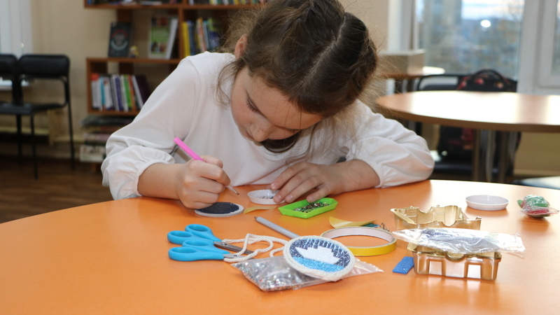 Библиопродленка стартовала!Библиотека предлагает занимательный досуг для школьников во внеурочное время23 октября 2025В библиотеке началась библиопродленка! Одной из первых посетительниц стала первоклассница, которая увлекательно провела день в библиотеке. В Музее информации любознательная девочка поучаствовала в познавательной викторине, смастерила оригинальный магнит на память «Красота севера» и даже успела самостоятельно выполнить школьное домашнее задание. А в оставшееся время весело провела время за настольными играми. Ждём младших школьников на библиопродленке! У нас познавательно и очень интересно!