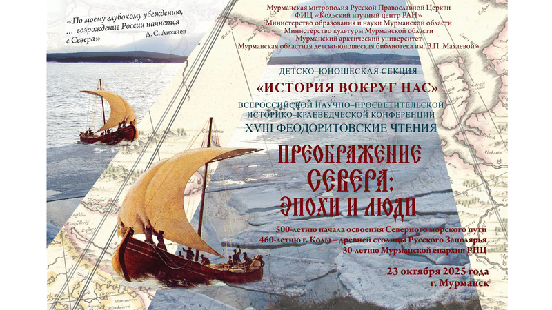 XVIII Феодоритовские чтения. Детско-юношеская секция «История вокруг нас»23 октября в 14:00 в Мурманской областной детско-юношеской библиотеке имени В.П. Махаевой в рамках XVIII Феодоритовских чтений начнёт работу детско-юношеская секция «История вокруг нас»23 октября 2025Ежегодная научно-просветительская историко-краеведческая конференция организована Мурманской митрополией Русской Православной церкви совместно с Кольским научным центром РАН, Министерством образования и науки Мурманской области, Министерством культуры Мурманской области и Мурманским арктическим университетом. Тема чтений в 2025 году – «Преображение Севера: эпохи и люди». Мероприятие приурочено к значимым датам в истории Заполярья: 500-летию начала освоения Северного морского пути, 460-летию города Колы, древней столицы Заполярья, а также 30-летию Мурманской епархии РПЦ. На секции в детско-юношеской библиотеке будут затронуты следующие темы: – Творчество Николая Колычева. – Традиционные культуры народов Севера. – Храмы земли Кольской. – Традиции и формы образования и воспитания в прошлом и настоящем. Приглашаем педагогов, детей и родителей погрузиться в историю Кольского Севера и узнать больше о значимых событиях и личностях!  |