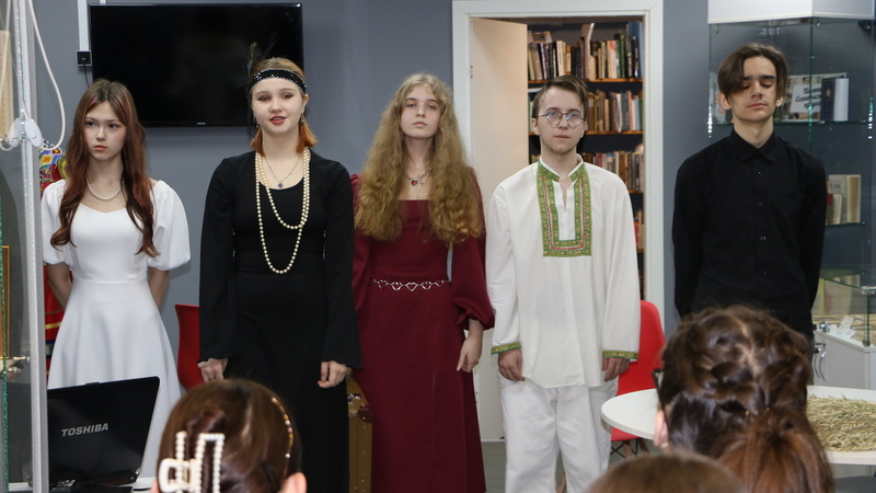 Постановку к 130-летию со дня рождения поэта подготовил образцовый детский коллектив Мурманской области – театральная студия «Маска» Первомайского Дома детского творчества. Зрителями спектакля стали студенты первого курса Мурманского педагогического колледжа (преподаватель Семенова Татьяна Павловна). Режиссер постановки – Башкиров Алексей Владимирович, актер, заведующий литературным отделом Драматического театра Северного флота. На импровизированной сценической площадке появились персонажи, изображающие лирического героя произведений Есенина, прозвучали стихотворения поэта, фрагменты из писем и воспоминаний его родных. Безусловным украшением спектакля стало очень выразительное музыкальное сопровождение. Студенты отблагодарили юных артистов дружными аплодисментами. В продолжение встречи и зрители, и актеры подробнее познакомились с историей музея и экспозицией, посвященной поездке Сергея Есенина на Север. Поэзия Сергея Есенина нашла свое театральное воплощение, а музей – новых друзей! |