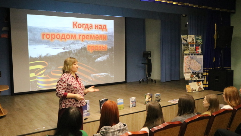 Когда над городом гремели грозыДля студентов колледжа в библиотеке состоялся час мужества, приуроченный к 81-й годовщине разгрома фашистских войск в Заполярье30 октября 2025«Знать и любить край, где ты живешь» – под таким девизом в отделе детского чтения прошли часы мужества, посвященные 81-й годовщине разгрома фашистских войск в Заполярье. Студенты Мурманского педагогического колледжа совершили исторический экскурс в героическое прошлое Заполярья: как люди осваивали северный край, что важно знать и чем гордиться. С большим интересом слушали об особенностях войны на Крайнем Севере, о том, почему гитлеровцам было важно захватить Мурманск, о храбрости солдат и самоотверженном труде жителей тыловых районов. Сотрудник отдела рассказала и показала на карте, где находятся Петсамо, Лиинахамари, река Западная Лица, мыс Муста-Тунтури – единственное место, где немецкие войска были остановлены в первый день наступления (29 июня 1941 года) и больше не продвинулись ни на шаг. Речь шла о том, что война в Заполярье была откровенно трудной: немецко-фашистские захватчики более трех лет рвались к Мурманску. Но ни огневая мощь, ни массированные бомбардировки, ни помощь финнов не помогли гитлеровцам одержать победу. |
