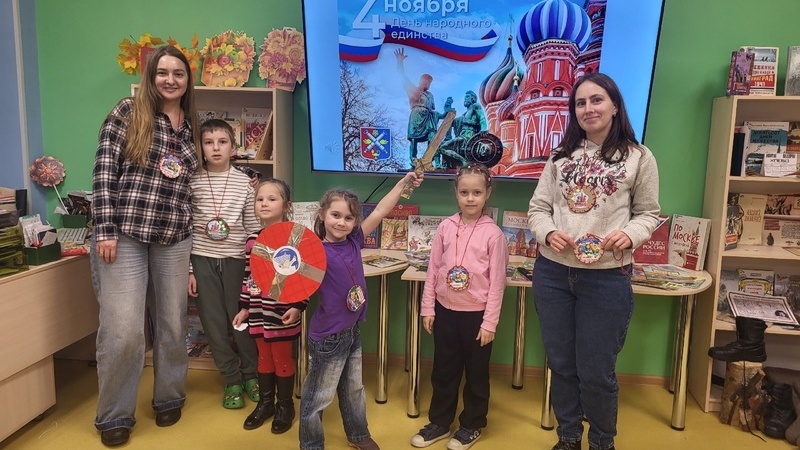 О чем рассказали мерлоны и часовникиВ честь празднования Дня народного единства в отделе детского чтения собрались дети и взрослые, чтобы совершить экскурс в историческое прошлое нашей родины3 ноября 2025Юные читатели и их родители еще раз вспомнили о событиях 1612 года, о людях, вдохновивших народ на подвиг, узнали какими дорогами добирались в Москву Минин и Пожарский и как весь честной народ сохранил пророчество чуда дивного. Участники с удивлением открыли для себя, что такое мерлоны, чем занимались часовники, на каких постах служили соколы и когда главные часы страны «спали» по ночам. С помощью электронной презентации прошлись по улицам столицы. Ребята узнали, как в Москве возник Китай-город, где находится русская Уолл-стрит, как появилось Бульварное кольцо, посчитали, сколько рек в Москве. В конце мероприятия каждый с удовольствием сделал для себя из картонных заготовок с помощью клея и ножниц медаль участника медиаралли. |