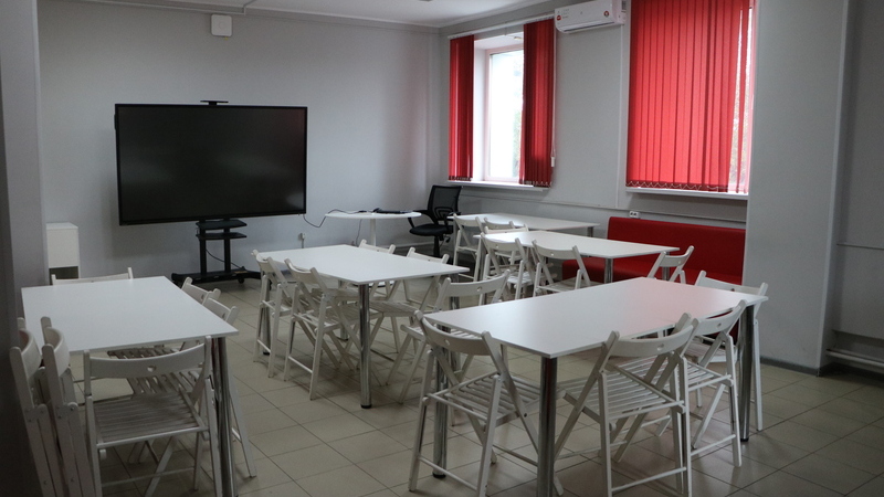 900 ₽/час О помещении:Зал находится на территории молодежного центра «БиблиоДвиж». Просторное обособленное помещение правильной прямоугольной формы с 3-мя окнами и двустворчатой входной дверью. В зале имеются столы, стулья, большой интерактивный экран, ноутбук. Есть возможность поставить флипчарт, а также подключить дополнительное оборудование. Подходит для проведения культурных, просветительских, досуговых мероприятий (мастер-классов, встреч, презентаций, тренингов, лекций, конференций). Если необходимо время для подготовки зала (расстановка стульев, настройка оборудования и т. д.), а также для сбора гостей мероприятия, – нужно учесть его при оформлении бронирования. По вопросам можно связаться по телефону 8 (8152) 44-27-26 Оборудование:Можно выбрать при оформлении заявки: