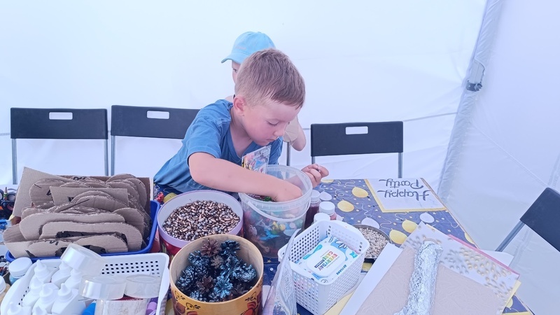 Фестиваль проходит ежегодно в Мончегорске, а своим названием он обязан памятнику табуретке – символу первых выступлений в семейном кругу. Арт-объект был установлен в Городском парке им. Сергея Бровцева в 2015 году. Гостями фестиваля в разные годы были известные артисты, писатели и поэты. Библиотекой в этом году была организована интерактивная площадка «ТабуреТОЧКА «Чудеса из ничего». Площадка привлекла внимание как детей, так и взрослых. На мастер-классе участники фестиваля создавали из картона невероятные фоторамки. Ребята и взрослые с увлечением украшали их, размещая на них целые композиции из шишек, фасоли, игрушек, пуговиц, песка, камней и многого другого. Такие фоторамки станут отличным дополнением к любому интерьеру. Проявить свою творческую индивидуальность участники также смогли посредством необычных техник живописи, оставив уникальный след на специально подготовленном арт-панно. Особенно это занятие полюбилось детям, которые с восторгом раскрашивали панно игрушками, бутылками, губками и ладошками. Получившаяся композиция станет украшением интерьера детской библиотеки. На площадке библиотеки также можно было сделать фотографию в яркой «Семейной фотозоне», которая не оставила равнодушными даже самых маленьких участников фестиваля. Фестиваль искусств «Табуретка» стал настоящим праздником культуры и творчества, объединившим семьи, талантливых людей разных поколений. Фестиваль дарит каждому возможность прикоснуться к миру прекрасного, обогатить внутренний мир и открыть двери в удивительный мир искусства. Полина Куция, заведующий сектором Центральной детской библиотеки г. Мончегорска  |